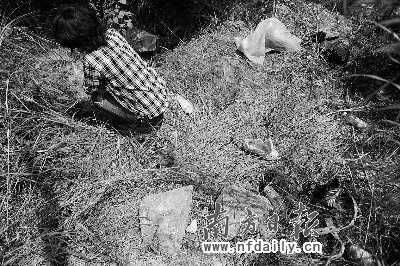昨日下午,蒋某雨等4人带记者来到事发地点。记者发现,此处距最近的工厂约700多米,马路上车来车往,但很少有行人经过。马路边坡下的草丛约一米多高,从坡上很难发现藏在草丛中的人。几只鞋和一条皮带散落在草丛中,蒋某雨说,还有些鞋和裤子被警察拿走了。