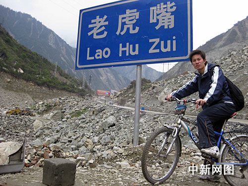两周前,西南大学研究生李应财独自一人骑自行车前往四川地震灾区,一路祭奠那些在“天灾”中逝去的人们。