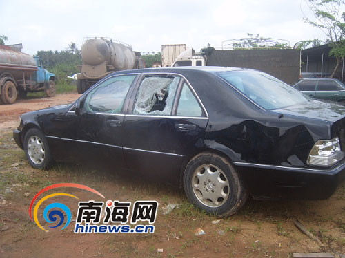4月21日晚10时许,在琼海市嘉积镇元亨街与纪纲街交界处,一辆车牌为“粤Zxxxx”奔驰车连撞两人后,遭百余名群众围堵,肇事车辆被砸。肇事司机疑为酒后驾车,警方正在调查处理此案。