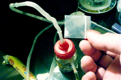 灯一打开,只见茶几上摆着吃剩的生日蛋糕,3个用来吸食新型毒品的瓶子,卧室桌上也摆着瓶子,散落着大量的塑料吸管。之后,该房间的6男3女全部被带回分局进行尿检,证明均吸食了麻果。