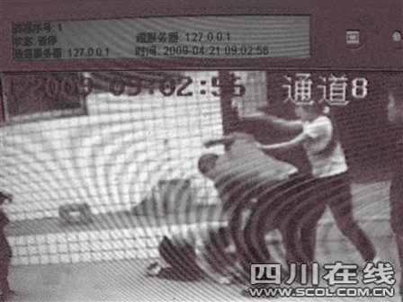 记者从录像中看到,事情已发生约10分钟左右时,受伤的田晓兰坐在办公楼大门口哭泣。突然,一个蓄平头的高个子冲过来,一拳打在她头上,随即又揪住田头发,拉到路中间,将其摔倒在地,用脚踢头部,然后又拳脚相加,任凭旁边另外一位女收费员如何劝解,丝毫没松手。其间,一个穿制服的男子过来劝解,但该男子也仍不予理会,其粗暴令人震惊。