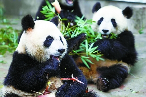 在进京的6只大熊猫中,只有华奥和锦意在雅安。早晨9时,当记者来到位于保护中心豹子山时,看到华奥慢悠悠地走出兽舍,看到记者的照相机镜头,它突然闪到了木桩后,直等到饲养员刘娟把它拽出来。虽然华奥是个“小男孩儿”,但吃起东西来却很斯文,别的大熊猫都或躲或卧,它却端端正正地坐在那,像个“淑女”。住在科研楼的锦意正好与华奥相反,虽是个女孩,却很淘气,先是盯上了记者的包,又抓又咬,之后又抱着记者的腿啃个不停,就像个淘气的小男孩儿。