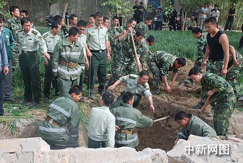16时45分左右,和田地区消防支队救援队赶到现场,发现2名被困人员当场死亡,1名被困人员在当地群众的帮助下被救出,另外1名被困人员被沉重的围墙压在下面,生命受到严重威胁。