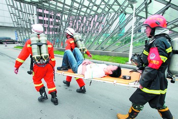 号称“三湘第一高楼”的荷花园电信大楼39层突然冒出滚滚浓烟。接到报警后,长沙市消防支队迅速调集消防车赶赴现场……昨日下午,消防支队在荷花园电信大楼进行了高层建筑防火演练,再次检测了我市消防部门扑救高层建筑火灾的能力。