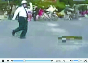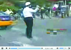 视频于3天前出现在优酷网上。打开视频,戴白头盔、穿蓝制服的男子在繁忙的路口指挥交通。