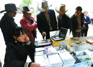 在孟青川的照相摊位边,19岁的夏春菊正在卖纪念品。夏春菊有个16岁的弟弟,地震时不幸遇难。夏春菊卖的照片10元3张,其中一张清楚地标着她弟弟生前就读的茅坝中学的位置。