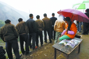 目前北川制作批发地震纪念品的商户有五六家,30多岁的席刚是其中之一。他每天可以批发出300张照片、100套光碟。
