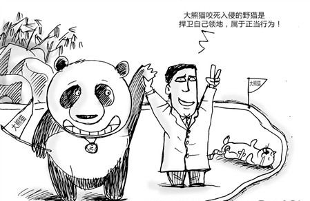 杨诚读大学时学的是野生动物保护专业,到基地工作担任大熊猫饲养员已经有3年的历史。他说:“大熊猫有强烈的领域感,无论圈养还是野生,它们的领地都是神圣不可侵犯的。估计这只野猫是跳进了成功的活动场,被成功发现,没有逃脱。”成功咬死入侵的野猫捍卫领地,是正当行为。