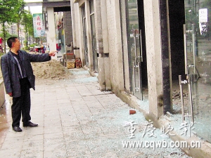 昨日下午,记者在现场看到,A1-14、15号门面各有一扇钢化玻璃门受损,16号门面有两扇玻璃门被毁,而14号门面上的二楼房间,也有一块玻璃破碎。