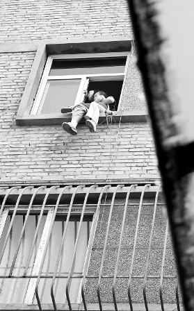 “你真傻啊,有啥想不开的,非要抱着自己的孩子寻短见?”楼下,人群中一名中年妇女不停地劝着。“别管我,他不回来,我也不活了。”女子情绪很激动,左手抱着孩子,右手扶着窗户,边哭边说,并时不时腾出手比画一番。怀里的孩子一直朝外看着,也不时地扭动身子,让楼下的人群为俩人的安全捏一把汗。