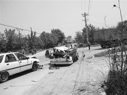 昨日上午,新洲境内106国道发生重大交通事故,一辆小轿车先后撞上大货车和另一辆小轿车,造成3人死亡。