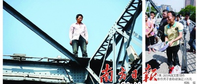 海珠桥,俨然成了“跳桥圣地”。现场几位媒体同行揶揄说,全城应该集体封杀海珠桥。是的,同样是这个残疾男人道出了大多数跳桥者的心声,“只有这里,才能吸引社会的关注。”每一次海珠桥跳桥秀,全城媒体几乎都要出动。