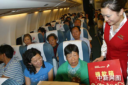 五月十三日,在由乌鲁木齐飞往深圳的ZH9488航班上,机组乘务人员用“爱心拍卖”纪念品、表演“感恩的心”、向四川汶川小学捐款等形式纪念特殊的日子。
