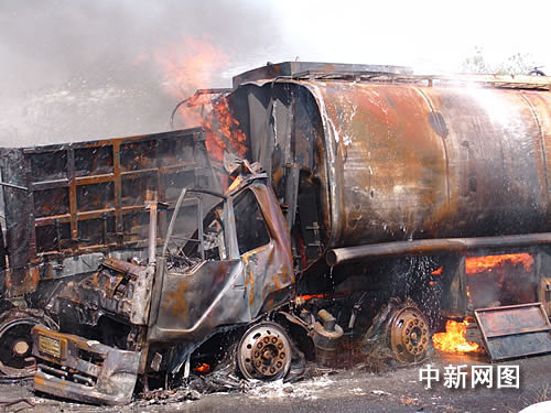 汾灌高速发生槽罐车与大卡车追尾事故两人死(图)(2)