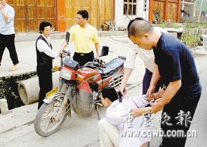 在距离检查站不足1公里的苦竹坝,125型嘉陵摩托车被前后夹击的民警截获。