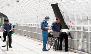 在天桥南侧上桥处的地上,也胡乱摆放有多张带有淫秽画面的光盘包装。这些包装内也同样是“空心”,四周也没有人。拿起一张光盘包装向四周望去,原本坐在不远处的一名60多岁的老汉才凑上前说道:“要欧美的还是日本的?咱这都有,20块钱一套。我在这可是长摊,质量你放心。”见“顾客”确实有心购买,这名老汉才来到附近的自行车旁,从破塑料袋内取出一个印有小品内容的光盘包装。随后,老汉从这个包装内取出了“特别光盘”。