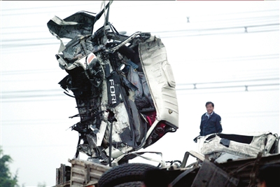 凌晨4点左右,现场只剩下4辆被毁严重的事故车。现场散落着饮料瓶、家具零件和成卷的钢索,这些都是大货车上装载的货物。4辆货车驾驶室均严重变形,一辆大货车的驾驶室被烧成了空壳。