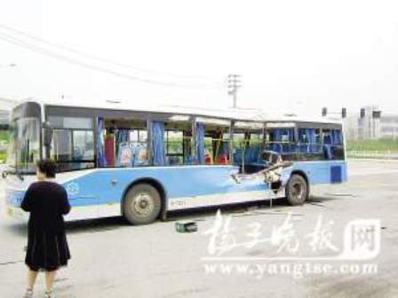 小徐是南京邮电大学大一的新生,昨天上午10点多钟的时候,他刚从学校门口出来,就上了这辆97路公交车。车上的人并不多,后面还有位置,小徐便找了一个靠门的位置坐了下来。公交车在驶离南京邮电大学公交站台后,继续向南京财经大学方向行驶,在通过两所大学中间的一处十字路口的时候,一辆大卡车笔直地向公交车的中部撞来。“哐”的一声,卡车的左边车头撞进了公交车的中部偏后方。乘客瞬间从座位上被撞到了走道中央,地面上全是碎玻璃碴,不少乘客满脸都是血,小徐的嘴巴被碎玻璃碴划伤。