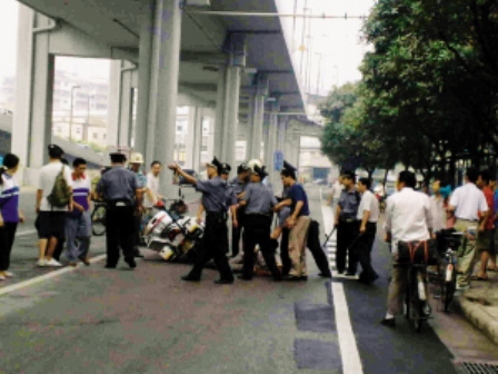 路边汽修店的一名工作人员告诉记者,他目睹了整个追逃过程:“早上9时半左右,马路对面一条河涌边冲上来一名男子,大概三四十岁,瘦瘦的、1.7米左右。他手拿着西瓜刀乱挥,见人就砍,身上的白衬衣上面满是血迹。”