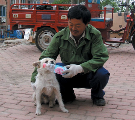 这只流浪的小狗叫小丑儿,原来的主人住在星海街,因为搬家而将它遗弃了。今年4月大,连降了一场很大的雨雪,因天气的原因,收废品的王先生没有出门,在家中把几天收的废品整理一下。在搬废品的时候,王先生突然听到类似呻吟的声音,于是就顺着声音找去,看到了一只白色的小狗蜷缩在废品边上,瑟瑟发抖,无精打采的,眼睛里流露出求助的神情。王先生把它抱进屋,并给它吃的喝的。当天气暖和时,王先生便把小狗送到了门外,准备放走,可这只小狗怎么也不肯离开王先生。从此,王先生出去收废品的时候,走到哪里,小丑儿便跟到哪里,还把街上被人遗弃的瓶子,捡到王先生的跟前。后来,王先生从邻居们那得知小丑儿的经历,便把它留在了自己身边。