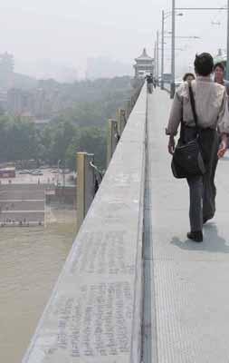 用毛笔写下爱情表白,用小刀刻下游览感受,本来很浪漫的情景,却不和谐地出现在长江大桥护栏上。