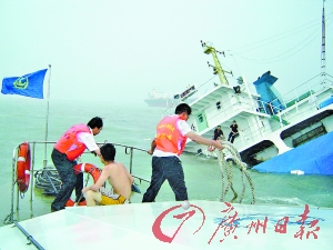 据广州沙角海事处张杰副处长介绍,昨天下午4时许,该海事处接到报警称“有船发生碰撞!”接警后,该海事处立即出动包括海特1115号、海特1114号共8艘船只赶往事发海域。7分钟后,他们便赶到了事发海域,而后立即开展搜救落水船员行动。