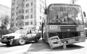 记者赶到现场看到,两车均并排打斜停在十字路口中间,伤者已被“120”急救车送往医院救治,交警正在事故现场进行勘察。出租车左侧车轮以及车体被撞变形,112路公交车前部车体被撞坏。40分钟后,交警部门调来一辆拖车将事故车辆拖离现场,此路段交通才恢复正常。