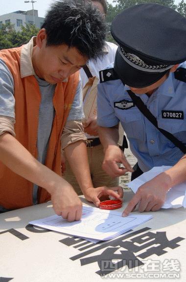 站在两名民警中间的任军,与10多天前相比,俨然换了一个人:头发凌乱,满脸胡茬、神情颓废。他接过逮捕证,颤抖着双手在上面签下了自己的名字。准备按手印时,他眼泪刷地流了出来,“我真的知道错了,我后悔了,我对不起那位警察!”顿了顿他说,“这10多天来,头发都后悔白了!”