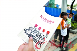 “六一”节即将来临,在顺德大良东区居住的梁女士,准备为自己读三年级的儿子买一套全新的文具,翻开儿子的书包,却意外发现里面有几本“歪语录”笔记本,上面大大个字写着“为人民币服务”、“提高警惕,保卫老婆”(见上图)。