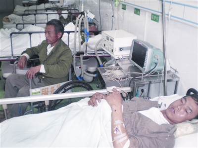 记者昨日中午1时许在市十一医院急诊室看到,4名农民工3人躺在急诊室病床上、1人坐在轮椅上。送他们来医院的工友付师傅说,他们30多个英山县民工在汉口火车站附近的航天花园4期工程做木工,完工后按工作量计算工钱,从今年2月6日至5月16日,他们的活已做完,工钱约25万元,却一直没有拿到手。