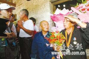 原来,为照顾老人身体,车速行进较慢,回乡行程被迫拖延了一个小时。从缅甸全程陪同刘老回乡的华西都市报记者介绍,前日傍晚从昆明飞抵成都后,老人就迫不及待地想连夜回乡,被组织者婉拒后,老人昨晨5时许就醒来,一直在细细整理自己的衣裤和奖章;大家本想在中途午餐,但老人很执著:回家的第一顿饭,一定要和家人一起吃。