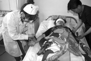 2日7时许,记者坐了一夜火车赶到集贤县。一下车就来到集贤县第一人民医院住院处。此时,农用三轮车上的伤者已被分别安置到四楼与五楼的病房。今年53岁的张某是繁荣村的村民,此次事故中他腰椎骨折、右腿腿骨断了两节、左腿脱臼, 身体无法动弹。张某的家人坐在病床旁,正给他擦洗双手,等待护士为他静点。