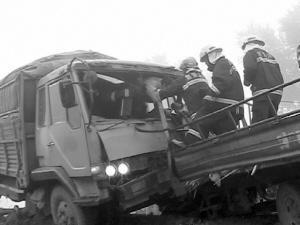 伤者杨女士回忆,她坐在第二排靠近道内的一侧。她们的车是从西向东行驶,那辆解放车自东向西迎面开来。原本在对向行驶车道上的解放车为了超其前面的小货车,一下子冲上她们这辆车行驶的车行道上。因为雾气太大,躲闪不及,解放货车与农用三轮车猛地撞在一起,杨某被震出,三轮车摔落在路旁的沟里。