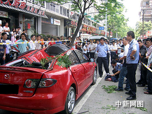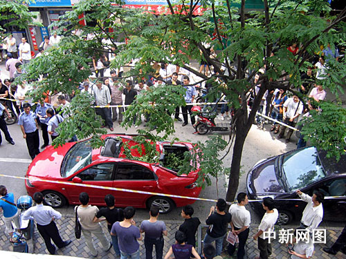 据现场目击者介绍,坠楼者是一名女性,年龄大概在30岁左右,坠楼时刚好被树挡了一下,落在一辆红色轿车上,当时还有一些意识。
