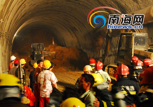 在施救现场,三亚市长市长助理、公安局局长王少山接受南海网记者采访时说,由于塌方面在离隧道口400米的隧道深处,塌方处工作面狭窄,只能容下一台挖掘机,边挖掘还继续有土塌现象发生,影响到救援的速度,现已约运出了3000余立方沙土。据现场消防官兵及其他施救人员反映,现已经能隐隐约约听被困人员发出来的求救声音。
