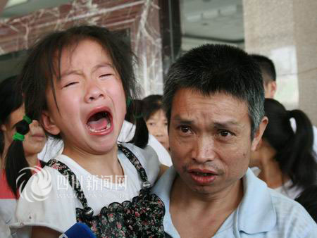 在成都军区总医院,记者见到了从这场惨烈事故中幸运逃生的祖孙俩。哇哇大哭的小女孩依然惊魂未定,不停地叫着妈妈,抱着她的是她的叔公陶守良。陶大爷告诉记者,小女孩的妈妈并没有在出事的车上,小女孩只是吓坏了,他和小女孩都只是跳车时碰伤了一点,“但我的老伴还在接受医院的抢救。”