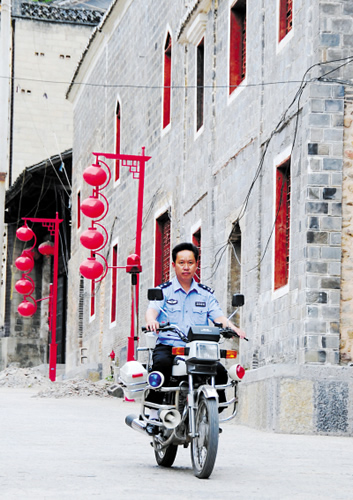 王警官“脚跨三省”,这个警务室2007年正式成立,上级安排他到这座老屋办公,主要负责湖南省花垣县边城镇和贵州省松桃县迓驾镇边界地区联防。
