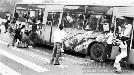 昨日上午8时左右,一辆8路空调车驶至成都万年场公交站时,有位女乘客突然尖叫,车上大约60名乘客顿时慌作一团。司机迅速将车停靠路边并打开车门,但仍有乘客打碎玻璃从车窗跳下“逃生”,1分钟不到所有人全部逃离车厢。事后证明只是虚惊一场,所幸没有造成人员伤亡。