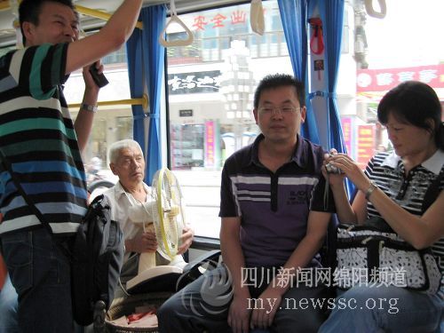下午4点过,记者重新上了一辆空调公交,并且故意把随身带的铁锤裸露在外,刚站稳,身边一对年轻情侣一眼就看到了记者包中的锤子,觉得非常好奇,问记者是不是带锤防身。记者故意说是砸玻璃用的,这对情侣一下就笑了,并笑中夹带语言:“这里是绵阳,不是成都,听说只有成都上公交才带锤子”,并觉得记者在绵阳坐带铁锤有点小题大做;旁边一位男乘客还友善地给记者建议,希望把锤子把柄锯短一点,以方便放于包内;身后一位女乘客还拿出相机拍照,记者问其为何照相,女乘客告诉记者,在成都带锤子看到过,在绵阳还是第一次看到带铁锤乘公交,觉得很新鲜,还说要发到网上的论坛去。
