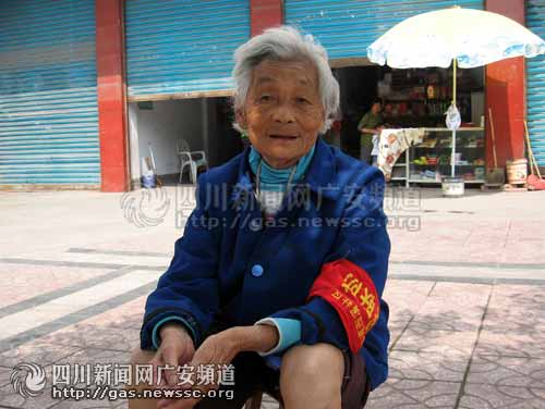 昨日中午,在广安市城南五福西路出现了这样的一幕:烈日下,一位头发全白、穿着朴素、卷着裤管、手拿蒲扇的老太坐在街道边的树荫下,袖子上戴着一个鲜红的袖章,上面写着“治安联防”。当时气温在30度左右,虽然是在树荫下,但是还是能感受到那股让人烦躁和热烘烘的暑气。出于好奇,记者便上前问了个究竟。