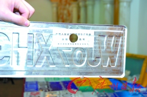 第二步:从温州购买制假车辆号牌模具及半成品,按买家需求的车辆牌号和数量将半成品加工成假车辆号牌。