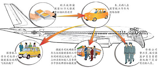 不到两年的时间内,首都机场12名内部人员与蛇头协同作案,分8次帮13人偷渡至加拿大。昨天,认定其构成组织、运送他人偷越国(边)境罪,包括上述12名内鬼在内的18名被告人,在(北京)市二中院被判处有期徒刑15年到缓刑不等的刑罚。