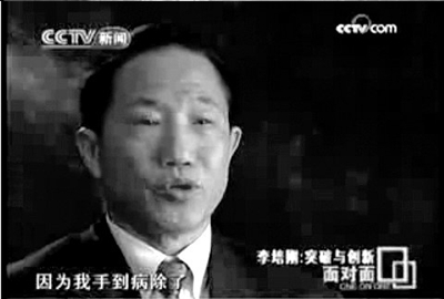 节目介绍说:“我们刚才看到李培刚用手治疗的方法,叫‘李培刚医学新疗法’,是2003年中国医师协会命名的。这是李教授在30多年的骨科临床医学研究中……总结出的一种新的医学理论和治疗手法。”李培刚还强调,自己是西医,以前是做手术的,一天中医也没学过。