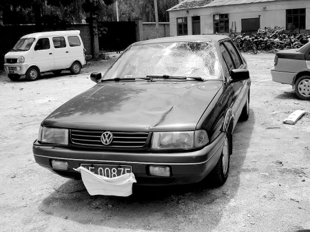 现年65岁的姚春霞是王峰的老伴,她一边哭一边向记者讲述22日晚发生的一幕。当晚,他和老伴及妹妹三人正欲回家,当走到东风大街西段渭化厂东门口附近时,一辆黑色“桑塔纳2000”轿车自西向东快速驶来,撞上正在过马路的王峰。听到身后一声巨响,姚春霞忙回头看,只见老伴被一辆轿车撞起后重重摔在地上,地面上有一滩血迹。姚春霞忙上前查看老伴伤情,并嘱咐妹妹记下该车的车号,车号为“陕E00875”。姚春霞说,为防止肇事车辆逃跑,她就站在肇事车前报了警。“后来,车上的两男一女下了车,不知道跑到什么地方去了。”