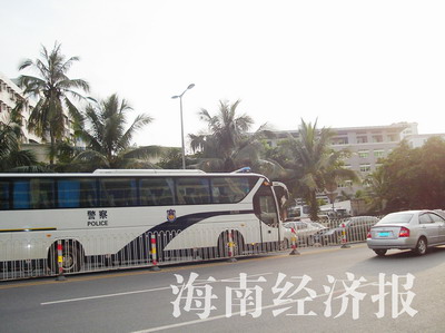 昨日下午6时许,一辆警用大巴车在途经海口琼州大道琼山自来水公司路段时,突然调头逆行在川流不息的车流中,准备开回到十几米之外的琼山监狱的“家”(图)。此举令相向而行的众司机目瞪口呆,众司机不断鸣笛,但该警车仍然我行我素。