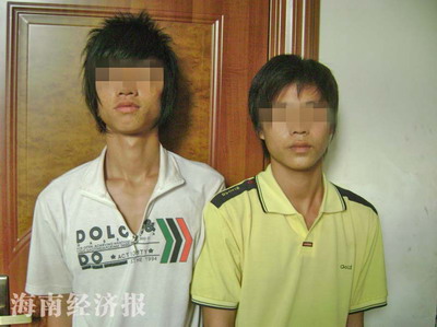 6月23日凌晨2时30分左右,犯罪嫌疑人卢健伙同张发、阿龙把女孩陈某婷(表姐)和陈某美从三亚河步行桥头带到三亚河西区城市乐园鱼塘边企图强奸,趁三名犯罪嫌疑人不注意,表姐陈某婷及时穿好衣服跳入三亚河引开三名嫌疑人,表妹陈某美趁势跳入鱼塘顺河而上逃脱魔掌。姐姐游泳过河后,及时到三亚市新居派出所报警,民警于当晚9时30分抓获两名嫌疑人(图)。