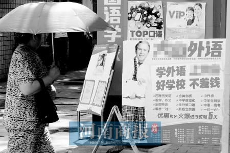 小布什的“写真”刚PS出来,该外语培训学校就将他放在了门口,让他给学校做广告。