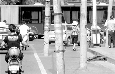 昨日下午5时许,记者分别联系了市交警支队科研所和市电业局,两部门工作人员均表示,他们对网友反映的路中电线杆也很头疼。