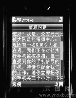 “您好!我是公安局刑侦大队监控指挥中心:现因有一名6.18杀人犯在逃……请你立即关闭手机三小时,否则拘留七至十五天。”接到这样的短信后,岳代林相信了,关闭了手机。然而发短信的人却利用他关电话的空当,向他身在四川的家属谎报他出了“车祸”。然而假的真不了,再高明的骗局迟早也要“露馅”。