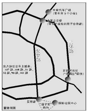 “真有那么夸张,亲眼所见。”对于活动在东部客运站的“黑西装”团伙,帖主强调“亲眼所见”的同时,还用了“夸张”一词描述。帖主说,你提包上车时“黑西装”一哄而上,伺机下手。而在金星立交桥附近,则有个三年如一日背着个不会长大的娃娃的男人,很好认,(大家要)见他就闪!还有,国际会展中心那里,至少两个人……遇到在昆明站转悠的“镊子党”,不要把钱放在外衣口袋里。